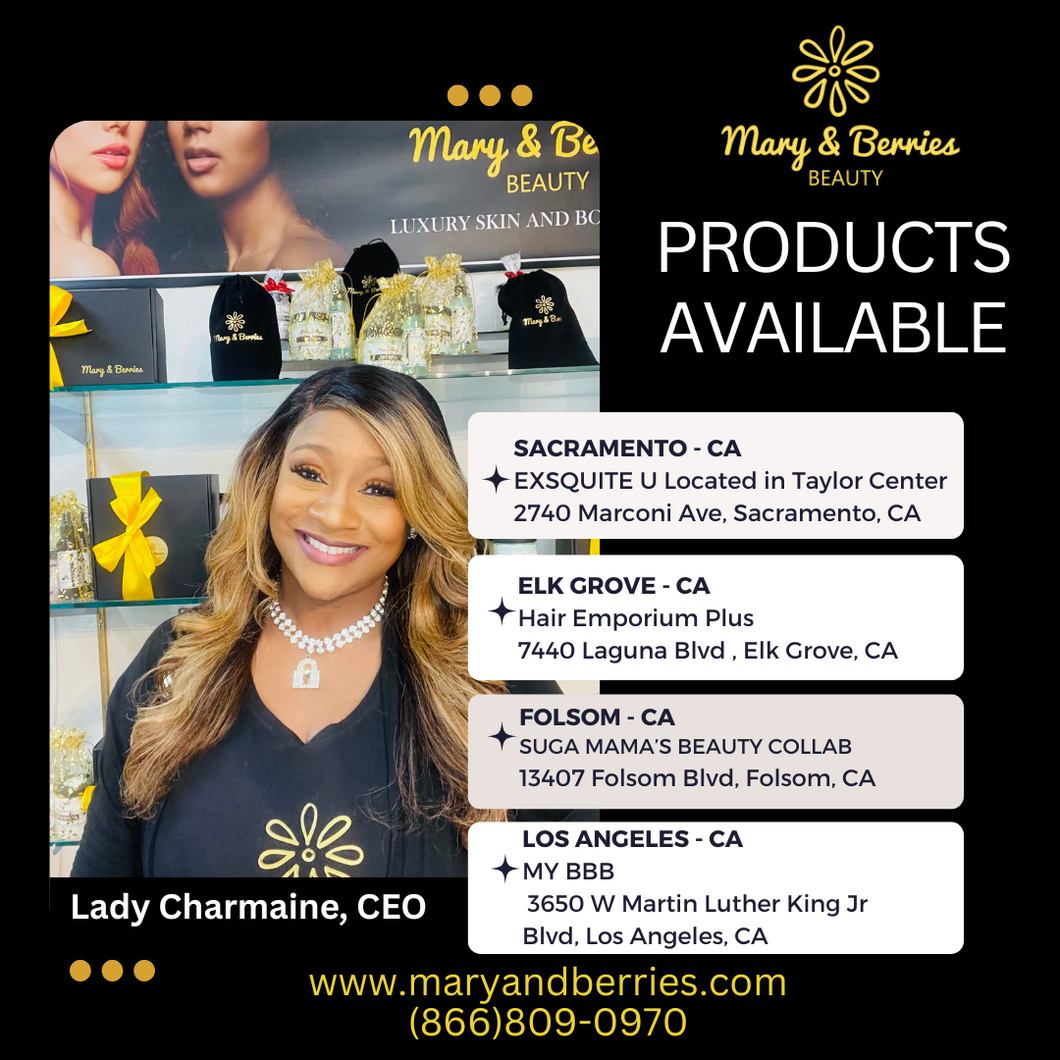 Mary & Berries Beauty products have arrived in Los Angeles. Shop at My BBB inside Bladwin Hills-Crenshaw Mall. 3650 W. Martin Luther King Jr. Blvd.